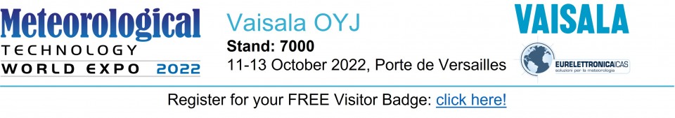 Vaisala sarà presente al Meteorological Technology World Expo 2022 a Parigi.